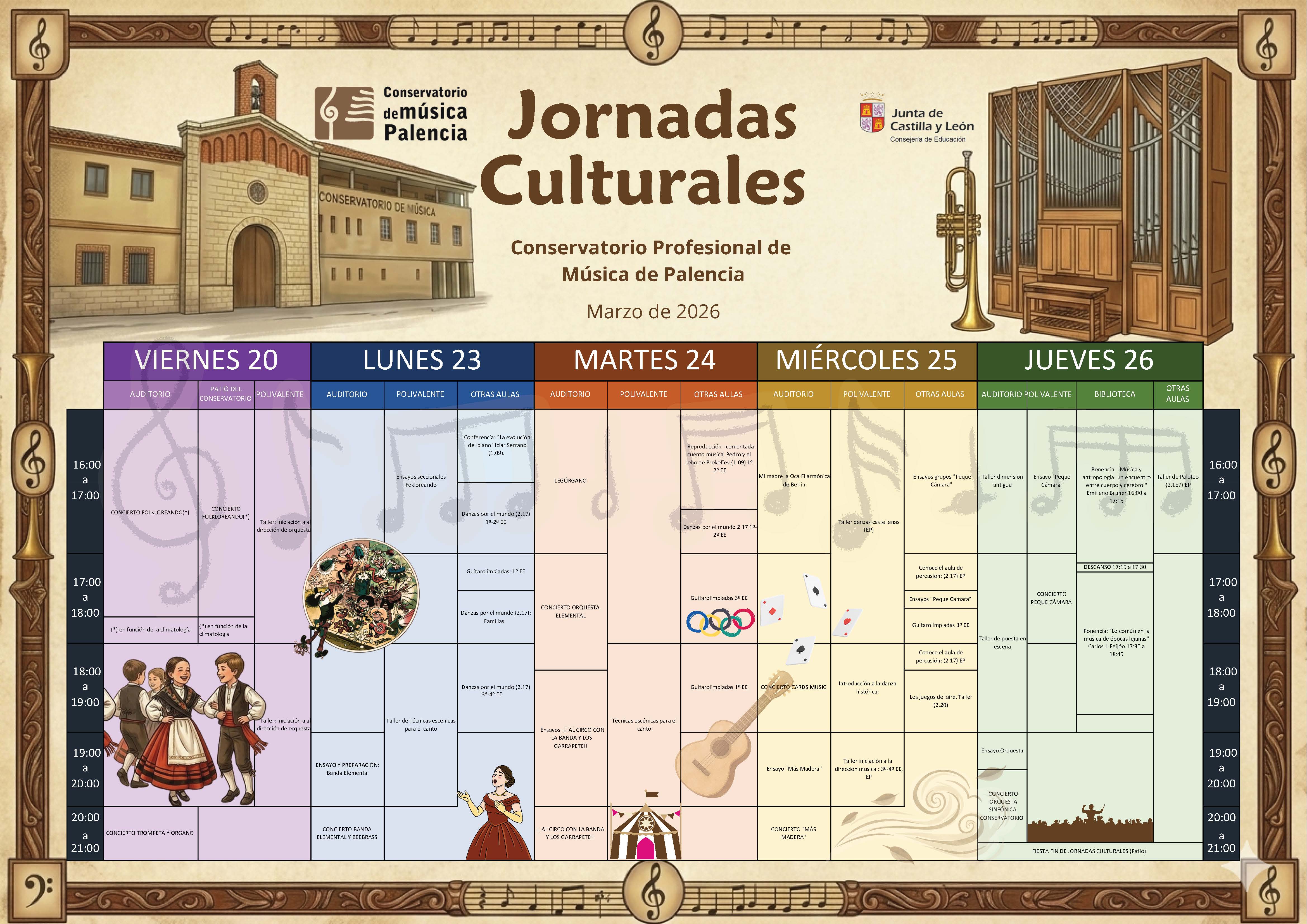 - De 18:00 a 19:45 horas - "Concierto Folkloreando" (En el Auditorio del Conservatorio. Es necesaria invitación para asistir, ver información AQUÍ)